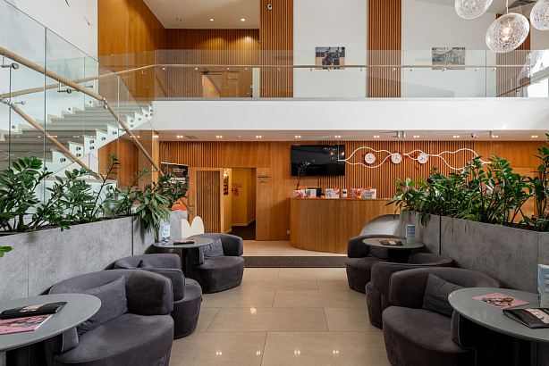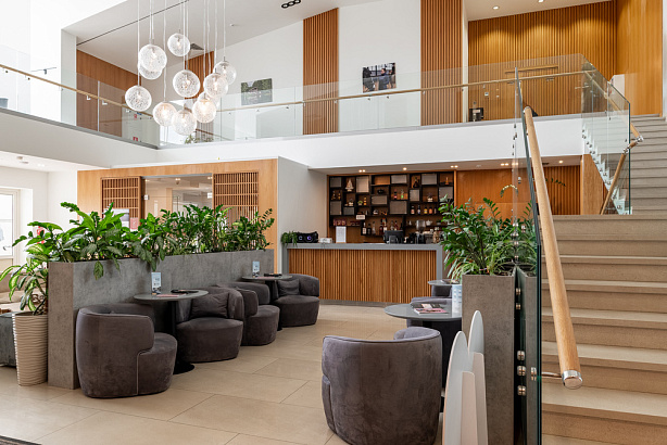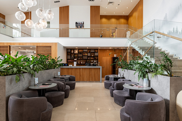 Бар расположен в холле гостиницы и предлагает гостям прохладительные напитки на любой вкус, а также чай, кофе, десерты и большой выбор безалкогольных и алкогольных коктейлей.
